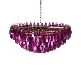 Art-deco zlatý stupňovitý sklenený luster Aemma s etážami a s detailami zlatej farby na reťazi 92cm