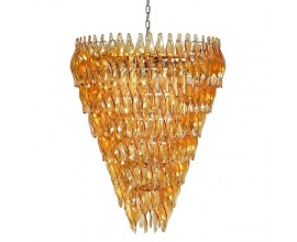 Art-deco sklenený hnedý stupňovitý luster Euron so zlatými detailami a reťazou 65cm