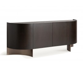 Luxusná etno barová skrinka Nandipha oválneho tvaru s dizajnom tváre v hnedej a bielej farbe 120 cm