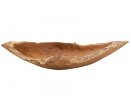 Etno oválna misa Gala z masívneho teakového dreva s hnedým povrchom s asymetrickým tvarom a výraznou prírodnou štruktúrou 60 cm