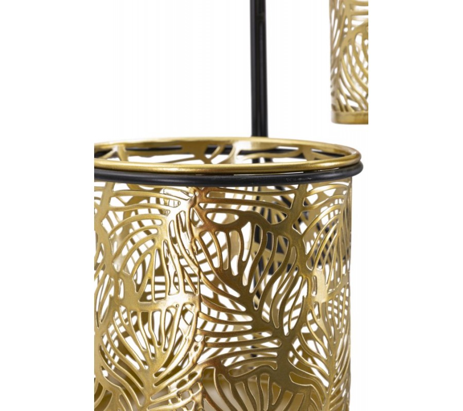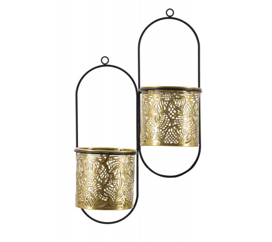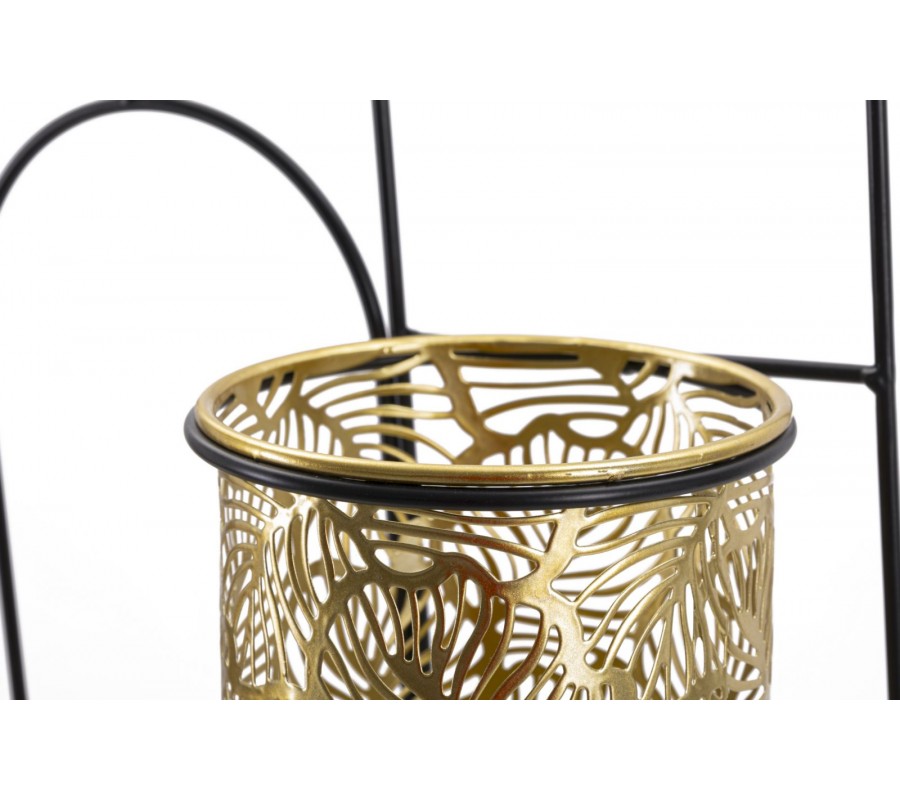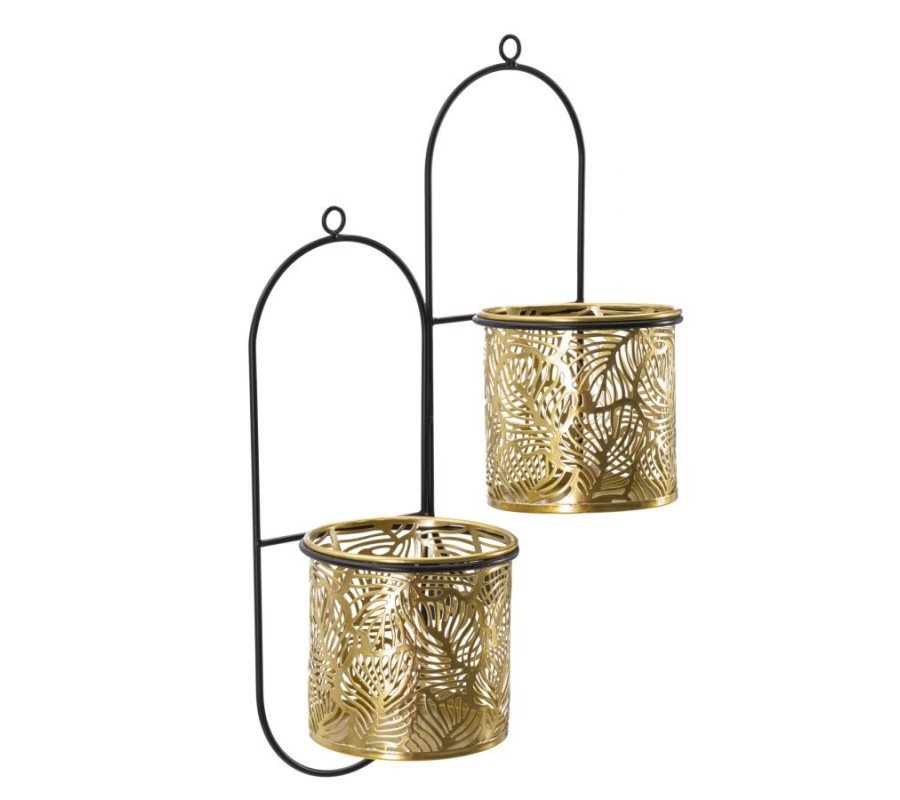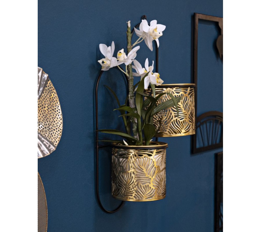 Glamour nástenné oválne zlaté kovové kvetináče Gasin s florálnymi vyrezávanými vzormi s čiernou konštrukciou 48 cm