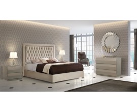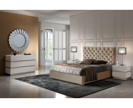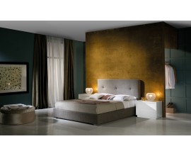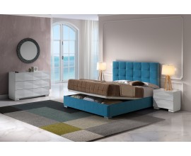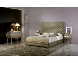 Dizajnová kožená posteľ Eva s vysokým čelom s chesterfield prešívaním a s úložným priestorom 90-180cm