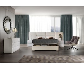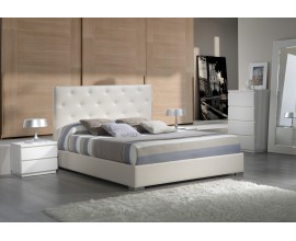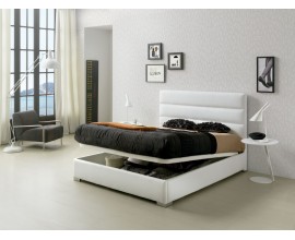 Moderná kožená posteľ Lidia s čalúnením bielej farby s vysokým čelom a s úložným priestorom 90-180cm