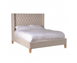 Luxusná posteľ Heidy II s béžovým ľanovým čalúnením v štýle Chesterfield a nohami z borovicového dreva 162cm