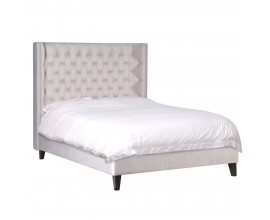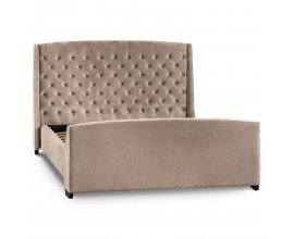 Luxusná chesterfield manželská posteľ Chelsea so zamatovým čalúnením v béžovej farbe 219cm