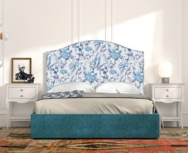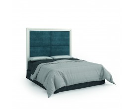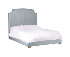 Retro štýlová manželská posteľ Acara s modrým prúžkovaným poťahom a vysokým vykrojeným čelom 194cm