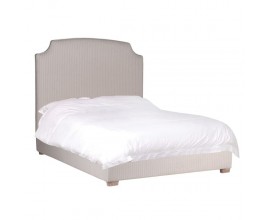 Retro štýlová manželská posteľ Acara s béžovým poťahom s pásikovým vzorom a drevenými nožičkami 163cm