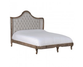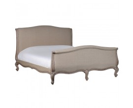 Luxusná zámocká vintage čalúnená béžová masívna manželská posteľ Nature s ľanovým poťahom a vyrezávanými nožičkami 180 cm
