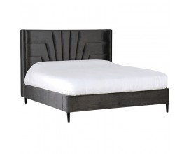 Luxusná art deco čierna manželská posteľ Costilla z dubového dreva s drážkovaným geometrický dizajnom 190 cm