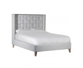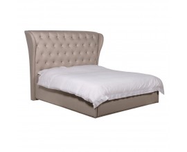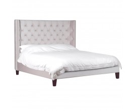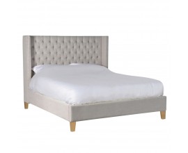 Luxusná klasická čalúnená manželská posteľ Rickon s masívnym hnedým dreveným rámom a naturálnym béžovým poťahom 192 cm
