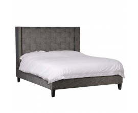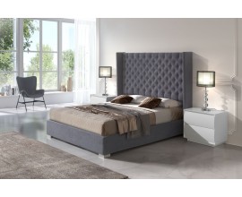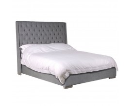 Chesterfield čalúnená posteľ s vysokým čelom v sivej farbe 215cm