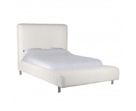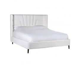Luxusná art deco manželská posteľ Harlow s bielym krémovým čalúnením z bouclé látky 212 cm