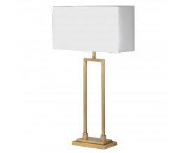 Art-deco stolná lampa Belar ll so zlatou kovovou podstavou v minimalistickom obdĺžnikovom tvare s tienidlom v bielej farbe 65cm