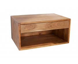 Vidiecky nástenný nočný stolík Arborio s policou a zásuvkou zo sheeshamového dreva 50 cm