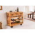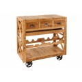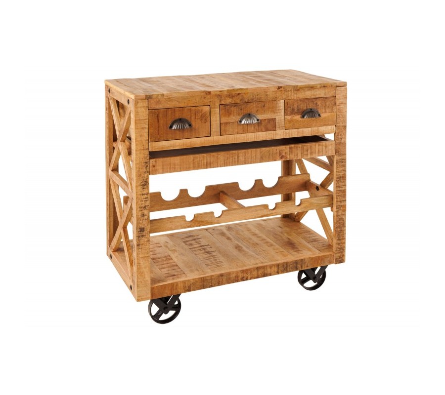 Masívny barový vozík Cahone z mangového dreva prírodnej hnedej farby s poličkami a štyrmi zásuvkami 90cm
