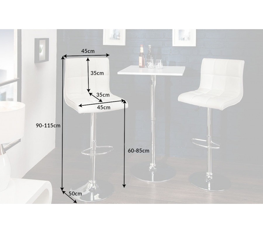 Dizajnová barová stolička Modena biela, nastaviteľná vo výške 90-115cm padne do moderného prostredia, ktorému dodá na luxuse a elegancii. Veľkosť celková: 45 cm x 90-115 cm x 50 cm (š x v x h), sedák: 45 cm x 60-85cm x 35cm (š x v x h), výška operadla: 35cm. Farba: biela, materiál: syntetická koža, 100% polyuretánu, chrómovaná základňa, nastaviteľná výška.