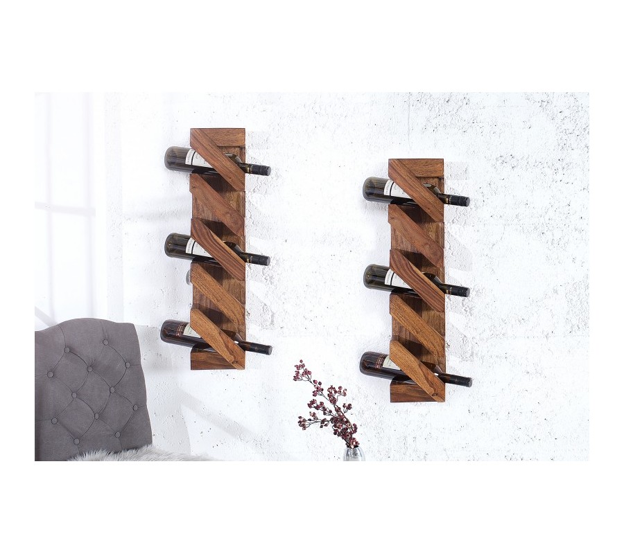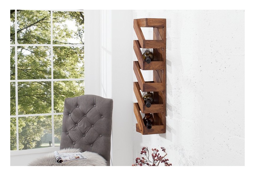 Štýlová vinotéka nástenný regál na víno Makassar 70cm Sheesham