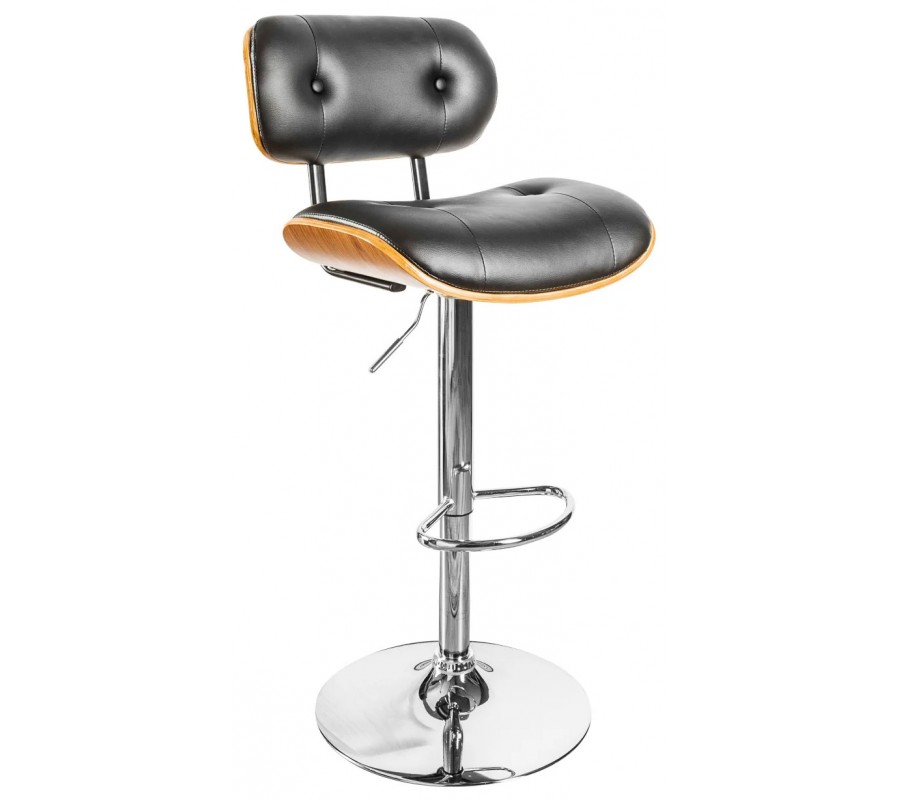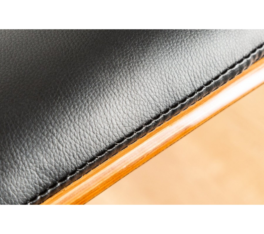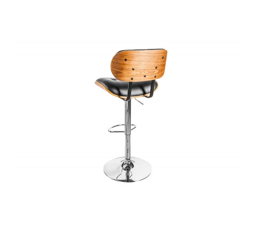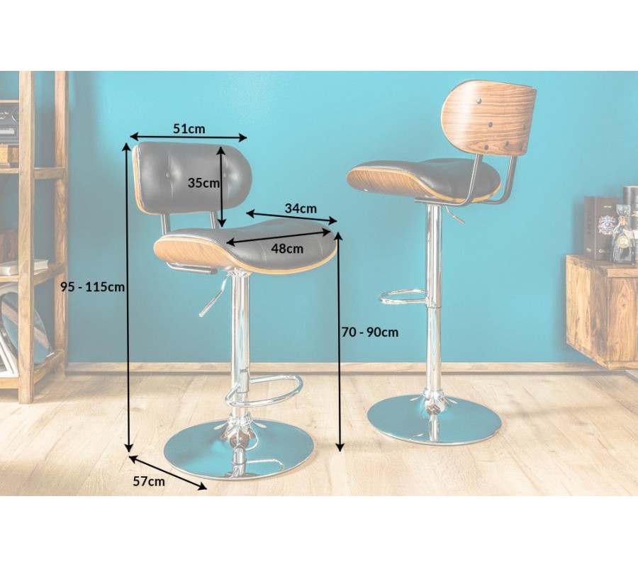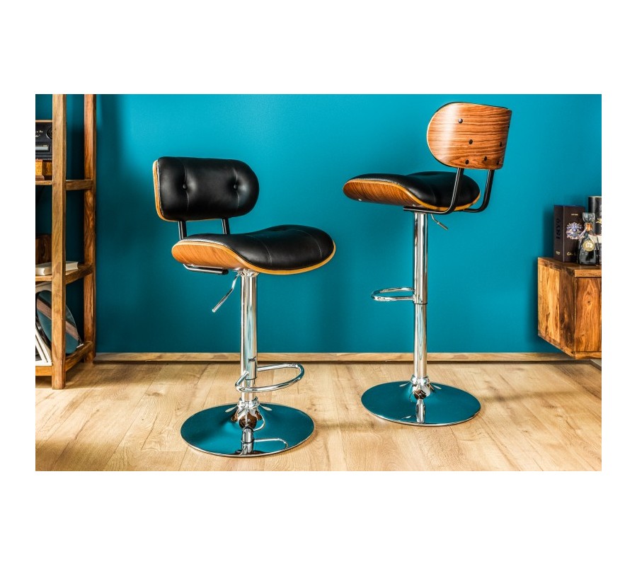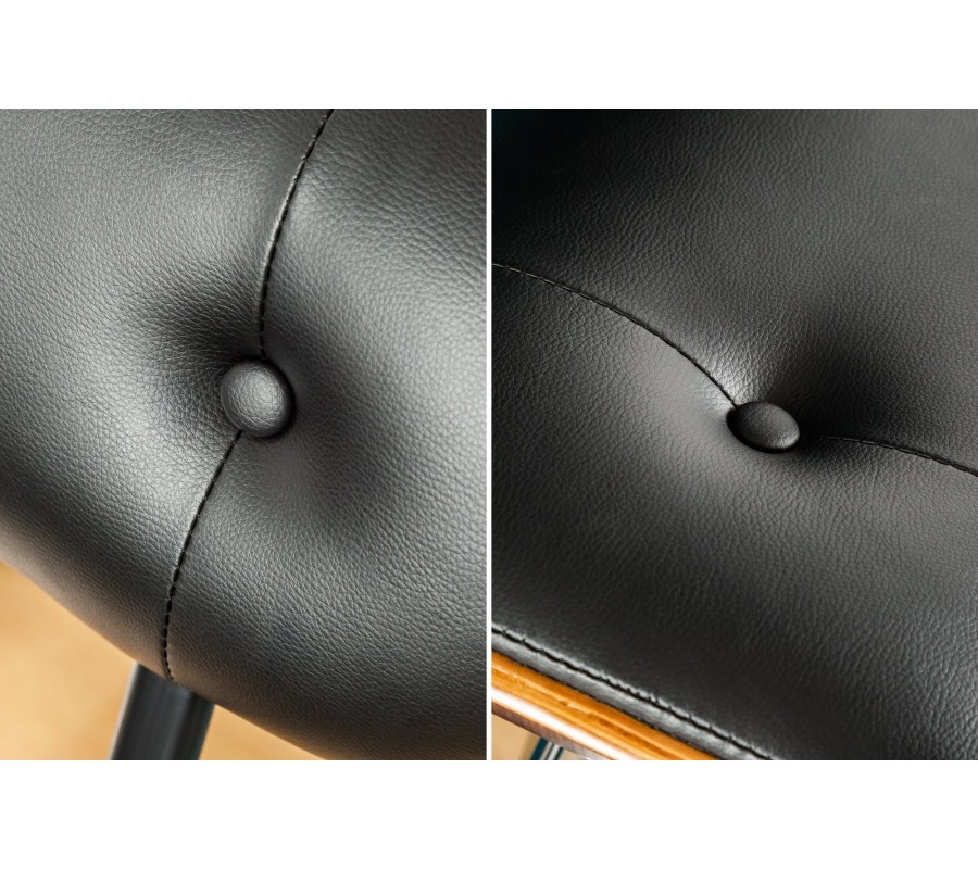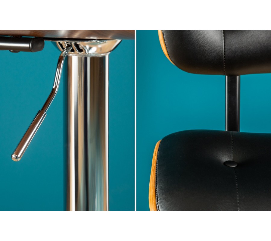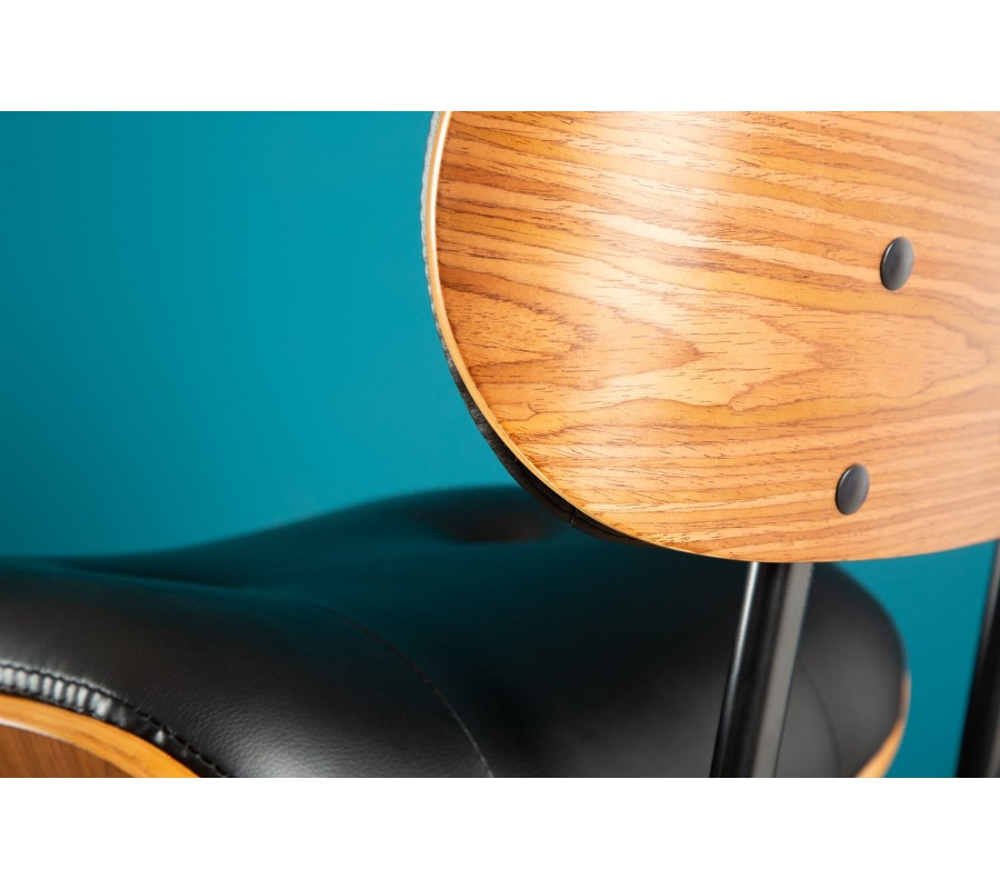 Štýlová barová stolička Timna je vkusným prepojením retro a moderného štýlu. Čierna poťah z imitácie kože robí sedaciu časť veľmi komfortnú a pohodlnú. Dizajn je zároveň doplnený a drevené operadlo a rám, ktorého farba a štruktúra príjemne ladia s čiernou farbou poťahu. Noha stoličky je vyrobená z kovu. Tento jedinečný kúsok skvele vynikne najmä vo farebnejších interiéroch, ale je ho možno umiestniť aj do minimalistickejšie zariadenej miestnosti. Stolička Timna prináša za váš bar skutočný nádych retro štýlu.