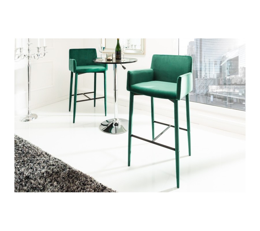 Dizajnová barová stolička Mako vás zaujme najmä vďaka svojej výraznej smaragdovozelenej farby. V nej sa nesie celá stolička- a to skutočne celá, keďže aj kovové nohy sú potiahnuté zeleným zamatom. Stolička tak pôsobí skutočne štýlovo a originálne. O vaše pohodlie sa postará poťah z príjemného zamatu a komfortné operadlo na chrbát i na ruky. Barová stolička Mako sa stane vaším neoddeliteľným spoločníkom! Skvelo vynikne najmä v svetlo zariadenom modernom interiéri, kde môže farebne dominovať. Dá sa skvelo kombinovať napríklad s bielym lesklým nábytkom.