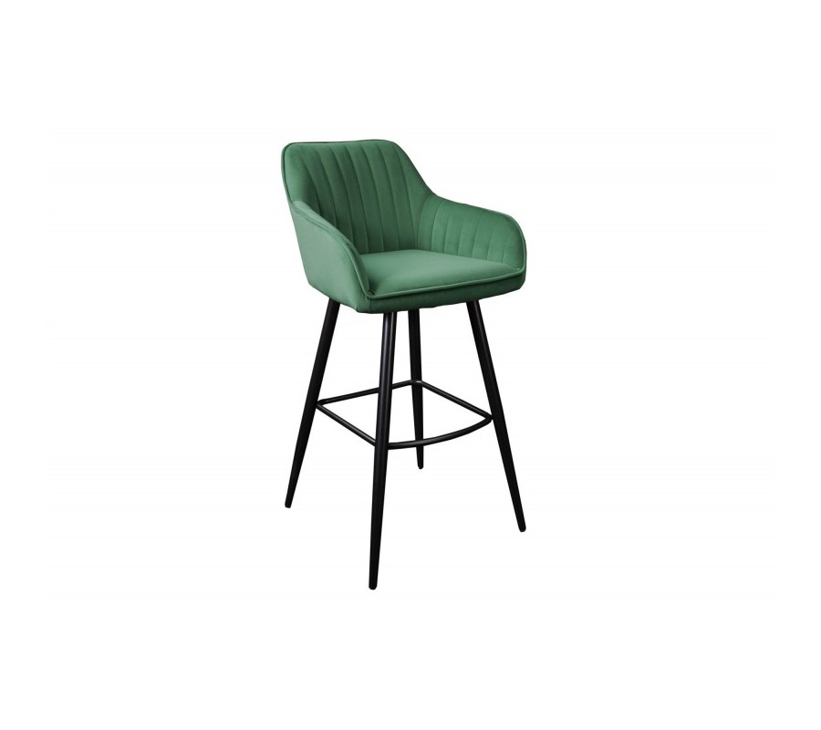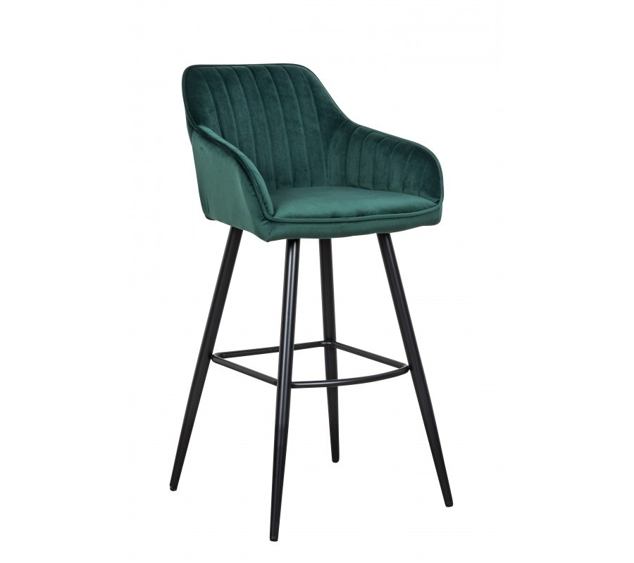 Moderná barová stolička Vittel so zamatovým smaragdovozeleným poťahom s čiernymi kovovými nohami 102cm