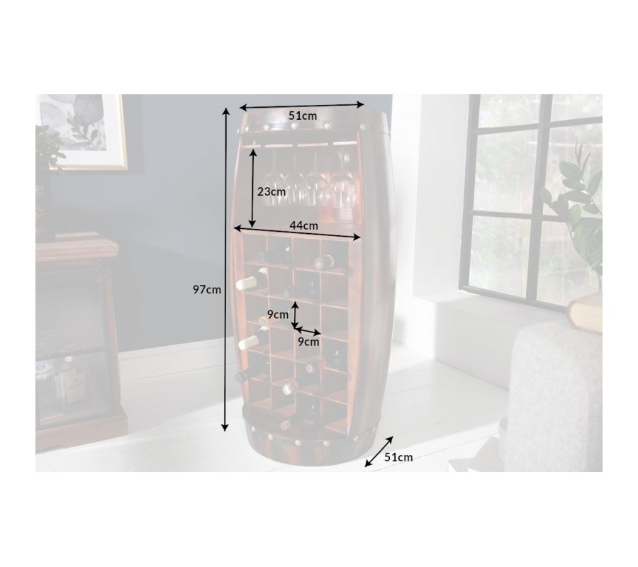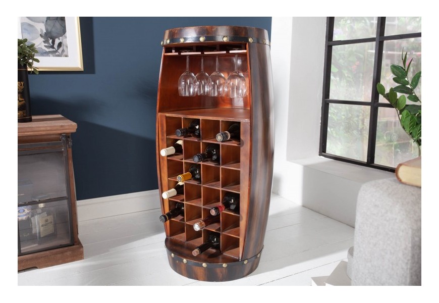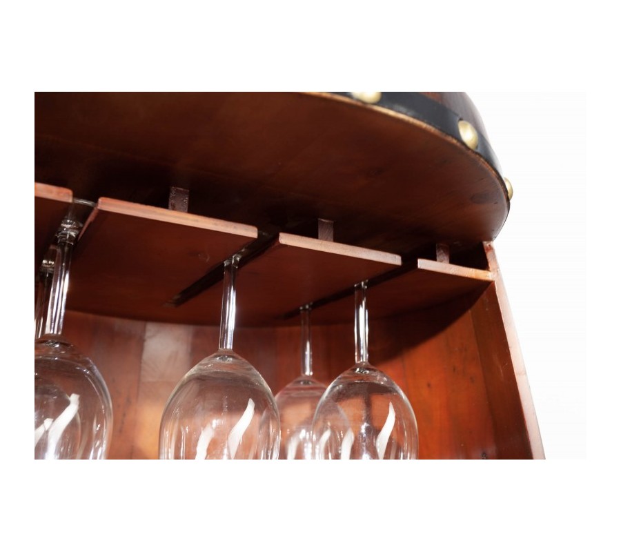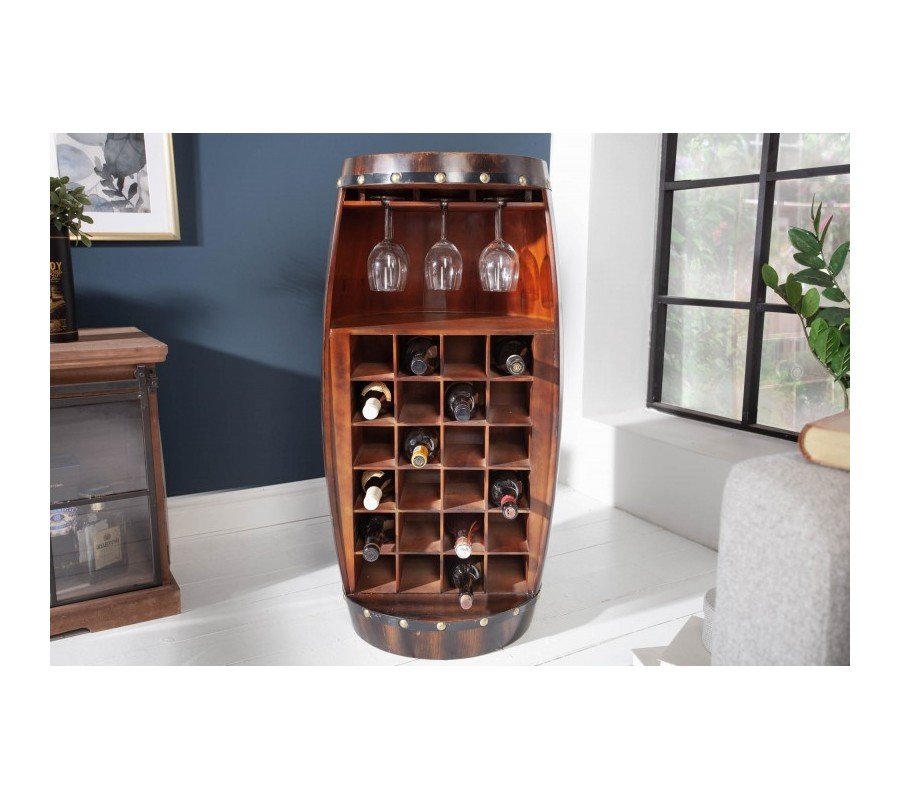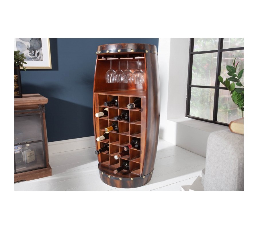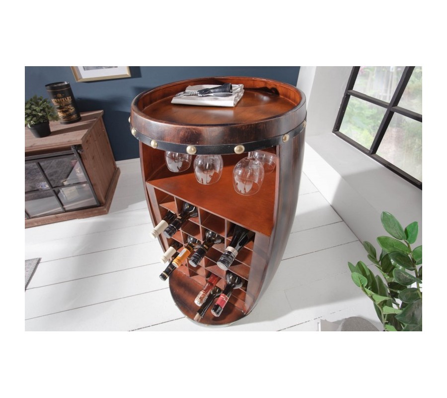 Koloniálna drevená barová skrinka Crawley v tvare sudu 97cm