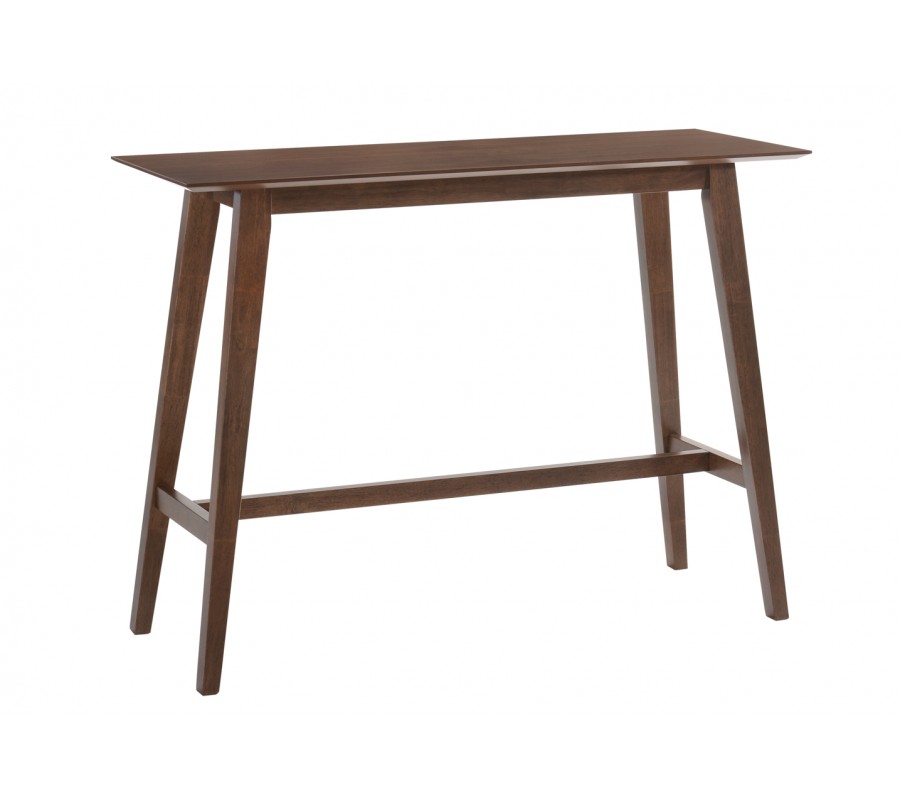 Škandinávsky obdĺžnikový barový stolík Nordica Nogal v orechovo hnedej farbe so štyrmi šikmými nožičkami 120cm