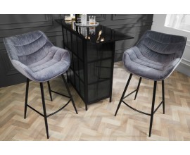 Dizajnová barová stolička Kotor so sivým zamatovým poťahom a čiernymi nohami z kovu 105cm