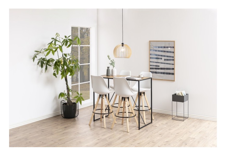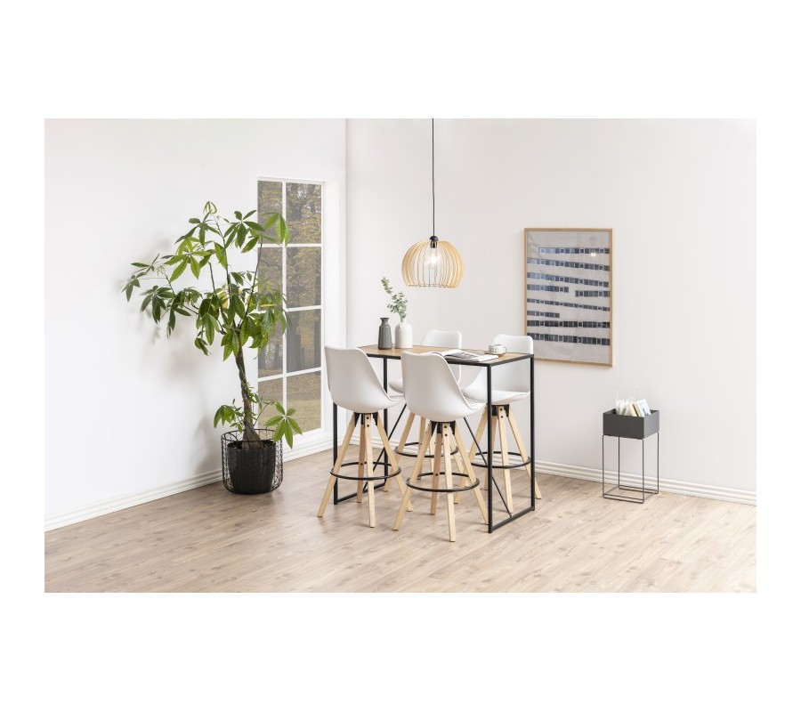 Osvieženie vašej jedálne, kuchyne či domáceho baru vďaka barovému stolu Linette je teraz na dosha ruky. Elegantne pôsobiaci stôl pozostáva z kovovej industriálnej konštrukcie v čiernej matnej farbe štýlovo vzájomne prepojenej na nožičkách. Stôl má tvar obdĺžnika a dominantou je vrchná doska z masívneho dreva v prírodnej hnedej farbe vsadená do kovovej konštrukcie. Výška stola Linette sa bude skvelo hodiť k barovým stoličkám, ktoré je vhodné ladiť rovnako do industriálneho štýlu. Neutrálna a nadčasová farebnosť prevedenia vám necháva otvorené možnosti pri výberu zvyšku zariadenia. Môžete siahnuť po výrazných sýtych farbách ako napríklad po army zelenej, burgundy či magenta ružovej, ale krok vedľa neurobíte ani pri výbere bielej, sivej či béžovej farbe v podobe závesov, stien či dekorácií. Funkčnosť a minimalistické vyhotovenie barového stola Linette ocenia aj tí najnáročnejší zákazníci.
