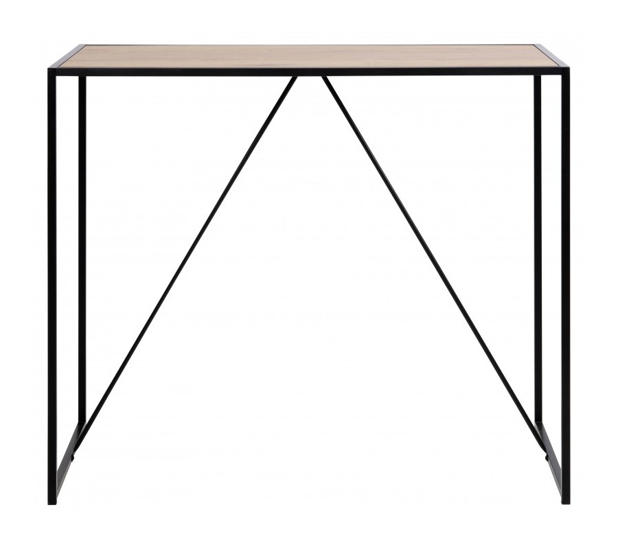 Industriálny barový stôl Linette s čiernou kovovou konštrukciou a obdĺžnikovou drevennou vrchnou doskou 120cm