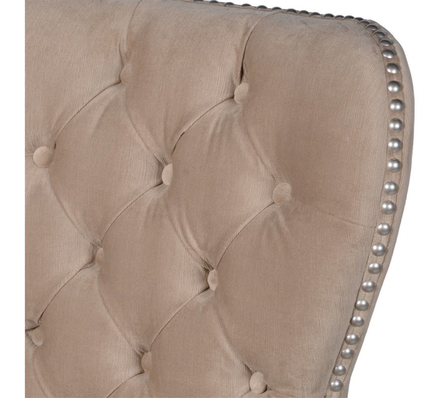Dizajnová barová stolička Besta Vám ponúka elegantný dizajn, dosiahnutý vďaka textilnému čalúneniu v béžovej farbe, ktoré je obohatené o štýlové prešívanie s gombíkmi, podobné štýlu Chesterfield. Dizajn barovej stoličky Besta taktiež obohacujú strieborné cvoky po okraji chrbtového operadla s vlnkovými líniami.