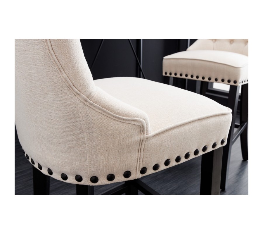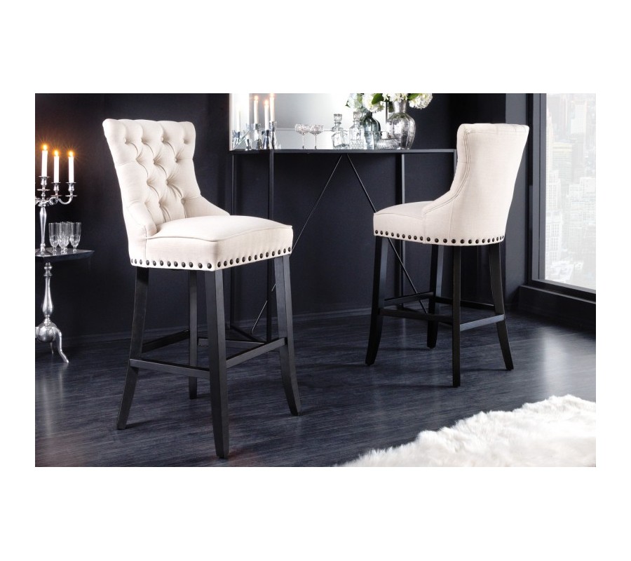 Elegantná barová stolička Modern Barock so svetlým béžovým poťahom a dizajnovým prešívaním 74cm