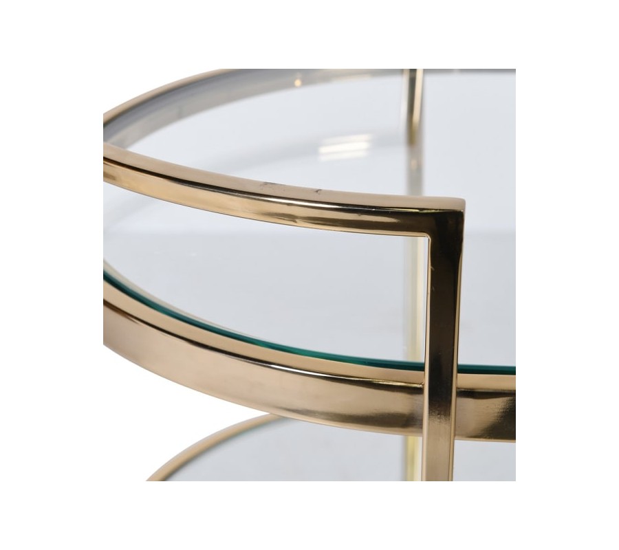 Art deco glamour barový vozík Monte s kovovou zlatou konštrukciou a s tromi sklenenými poličkami 90cm