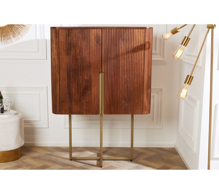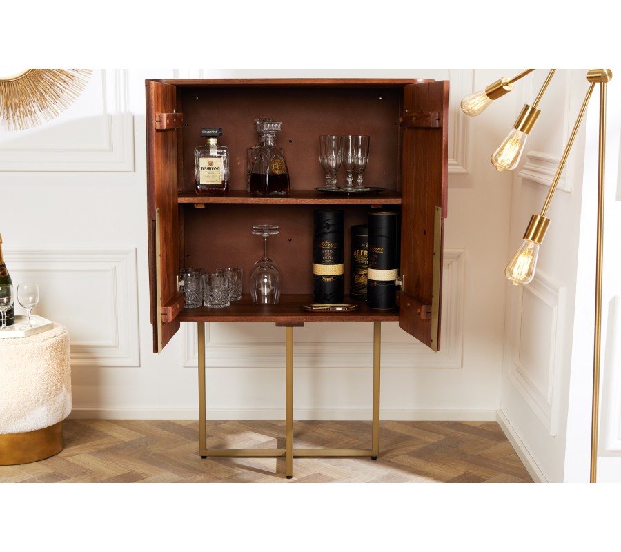 Luxusná art deco barová skrinka Gatsby z mangového dreva so zlatými detailmi hnedá 125 cm