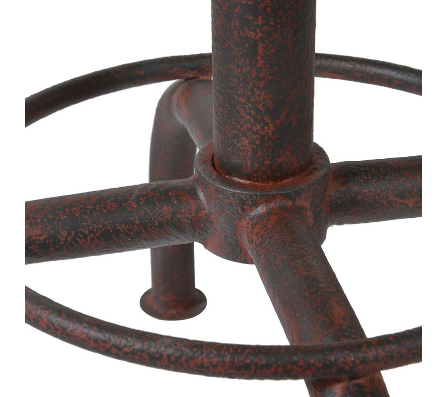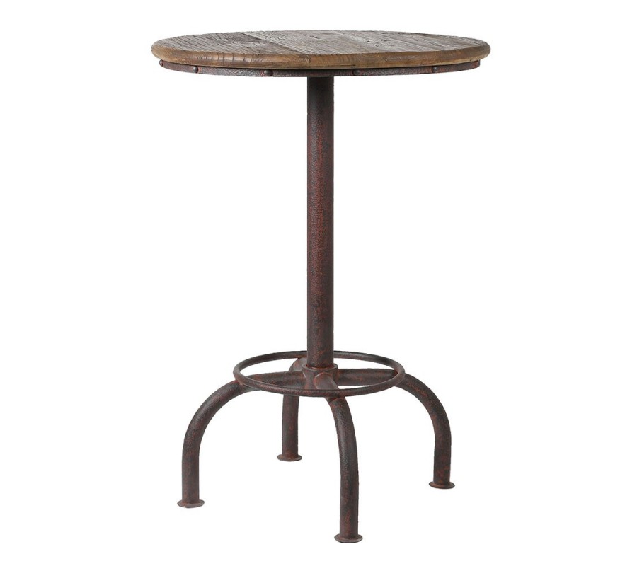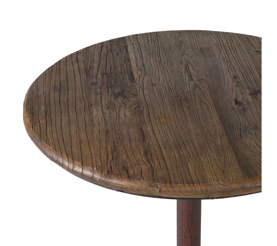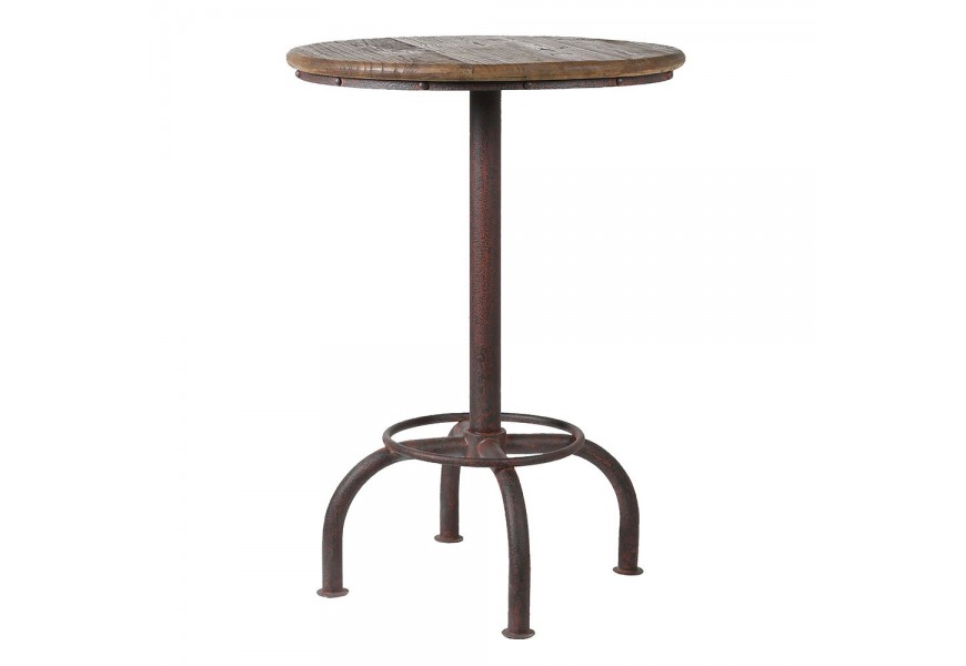 Industriálny barový stolík Nemesis s okrúhlou stolovou doskou z breskového dreva a prekrižovanými kovovými nožičkami vytvára priam dizajnový kúsok. Jeho povrch z brestového dreva pridáva do priestoru teplý a prírodný nádych. Stolík je vyrobený z kovu, na ktorom sú úmyselné náznaky hrzde a viditeľné zvary, čo je typickým znakom industriálneho štýlu, v spodnej časti stolíku dominujú štyri tvarovane nožičky vyrobene z ohýbaných kovových trubiek, ktoré mu dodávajú potrebnú stabilitu. Štvorica nožičiek je doplnená kruhovou opierkou na nohy. Horná okrúhla doska je pevne ukotvená na jeho stredovej nohe pomocou železnej konštrukcie, ktorá je po okrajoch vyzdobená štýlovým nitovaním. Tento stolík spojuje vintage vidiecku eleganciu s modernými prvkami, vytvárajúc tak atraktívny kus nábytku pre váš interiér. Vhodný je najme do barov ladených v industriálnom štýle, ku ktorému patria steny z pálenej tehly bez omietky alebo aj do recepcii zariadených v industriálnom štýle.