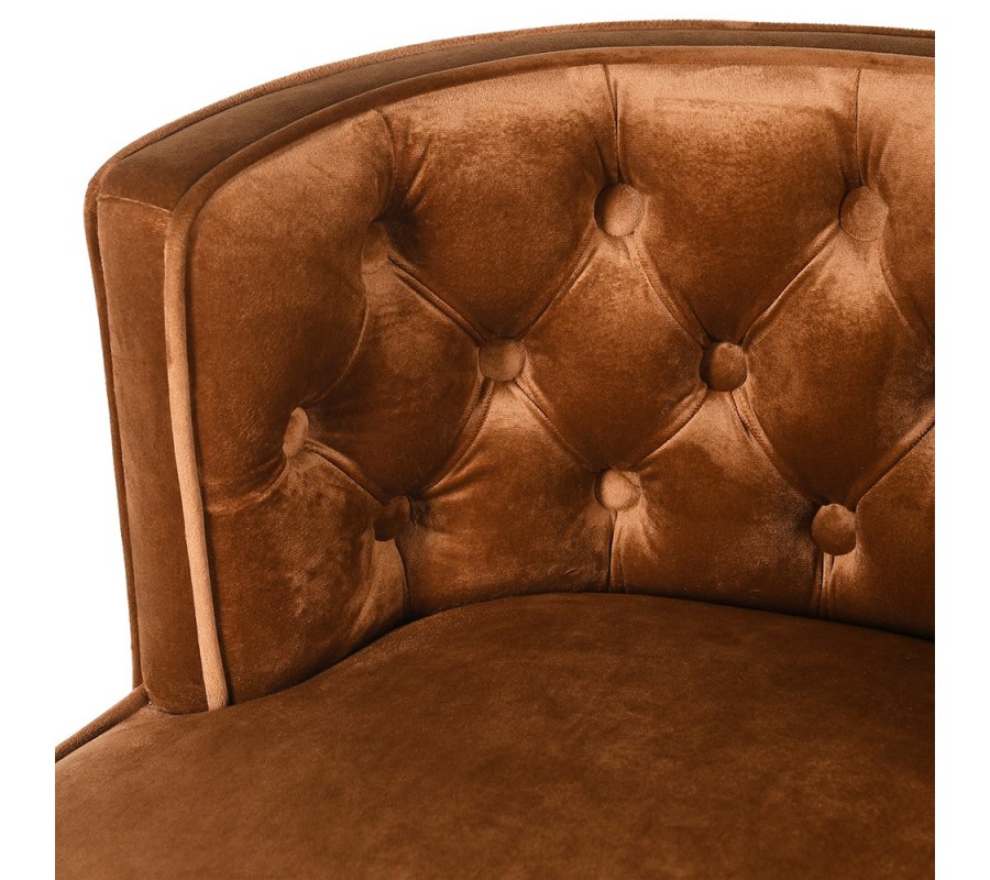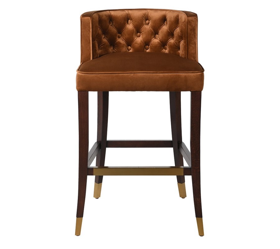 Luxusná art deco barová stolička Strasbourg so zamatovým poťahom a chesterfield prešívaním koňaková hnedá 97 cm