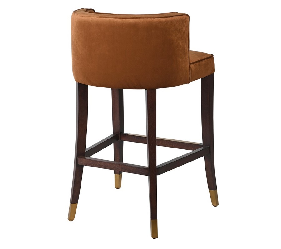 Barová stolička Strasbourg prinesie do vášho domova luxus éry art-deco. Dominuje jej nádherná koňaková hnedá farba zamatového čalúnenia doplnená tmavými dubovými nožičkami so zlatými dekoračnými prvkami. Eleganciu minulého storočia dodáva stoličke prešívanie typu chesterfield na nízkej chrbtovej opierke. Stoličku môžete skombinovať s ďalším nábytkom v štýle art deco, s ktorým sa prepojí prostredníctvom kovových prvkov v zlatej farbe. Tiež je vhodným doplnkom k vysokému stolu s tmavého masívneho dreva v podobnom odtieni ako nožičky. Koňaková hnedá farba vnesie do miestnosti pocit útulnosti. Stoličku môžete tiež umiestniť do kuchyne k ostrovčeku. Hodia sa k nej podobné teplé odtiene hnedej, ale napríklad aj odvážnejšia červená či zelená. Ak pridáte ďalšie doplnky v zlatej farbe, ešte viac zvýrazníte dojem luxusu, no vďaka hnedým odtieňom bude miestnosť stále pôsobiť vkusne. Pohodlie vám zaručí penové čalúnenie sedacej časti na pevnom dubovom ráme.