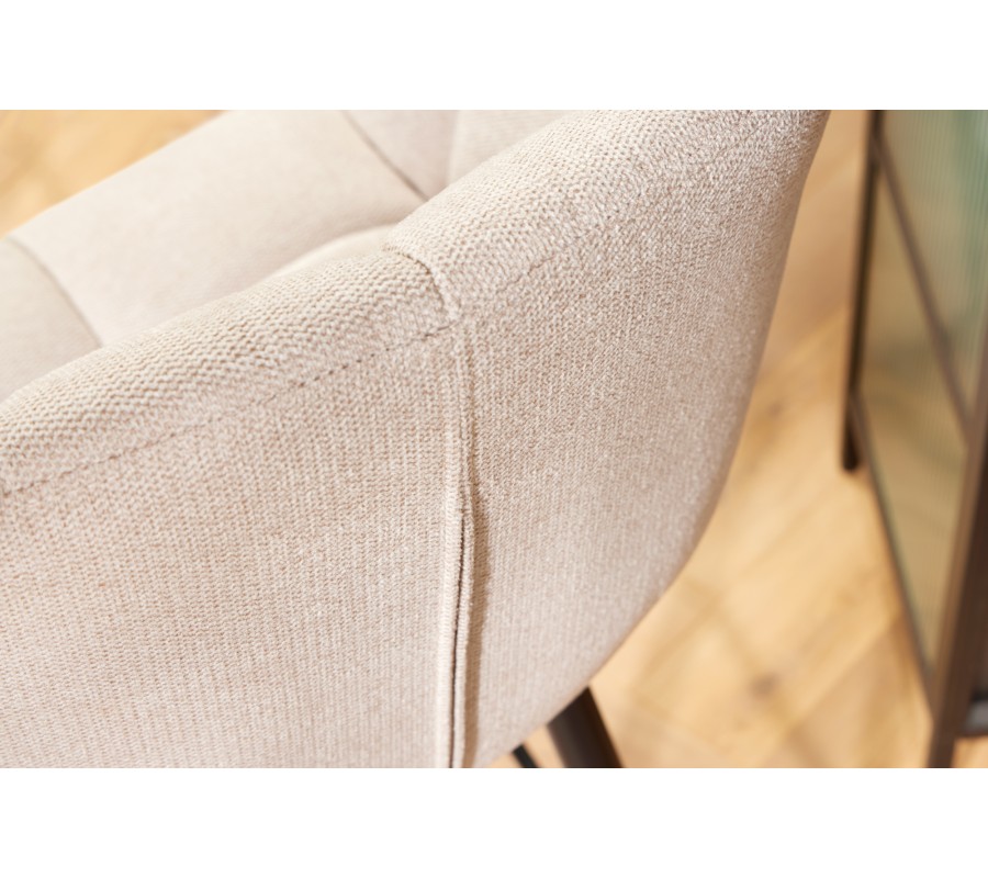 Barová otočná stolička Mariposa vám prináša moderný dizajn s nádychom štýlového industrializmu. Pohodlie vám zaručí penové čalúnenie s príjemným béžovým poťahom z mikrovlákna. Prešívanie do štvorcového vzoru a zaoblená sedacia časť s opierkami dodávajú stoličke mäkký a útulný vzhľad, ktorý vás pozýva na príjemné posedenie. Pod sedadlom sa nachádza otočný mechanizmus pre vrchnú časť stoličky. Rovné kovové nožičky majú jednoduchú, elegantne pôsobiacu štíhlu siluetu, doplnenú o opierku na nohy. Povrch je upravený čiernym práškovým nástrekom s matným efektom. Nožičky dodávajú stoličke industriálny nádych a ľahko ju tak skombinujete s ďalším nábytkom s tmavými kovovými prvkami. Čalúnenie v teplom odtieni béžovej tieto kovové prvky zjemní a do industriálnych priestorov, ktoré majú tendenciu pôsobiť chladne, vnesie pocit útulnosti a tepla. Hodí sa tiež do moderne zariadených priestorov, k lineárnemu nábytku v neutrálnych odtieňoch, ktoré dodajú vašej obývačke či jedálni nadčasový dizajn. Stoličku môžete tiež doplniť ďalším nábytkom z kolekcie Mariposa, ktorý nájdete v našej ponuke.