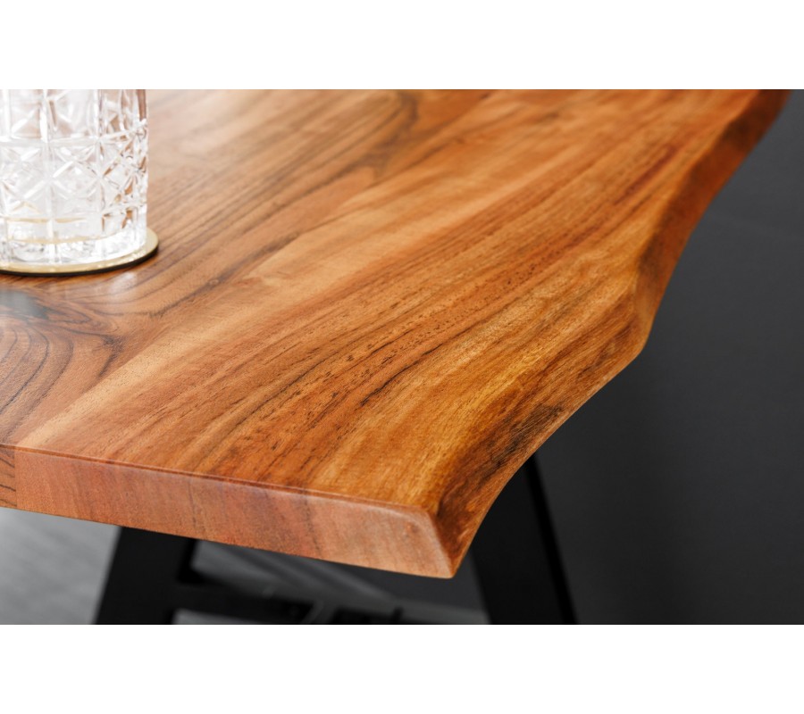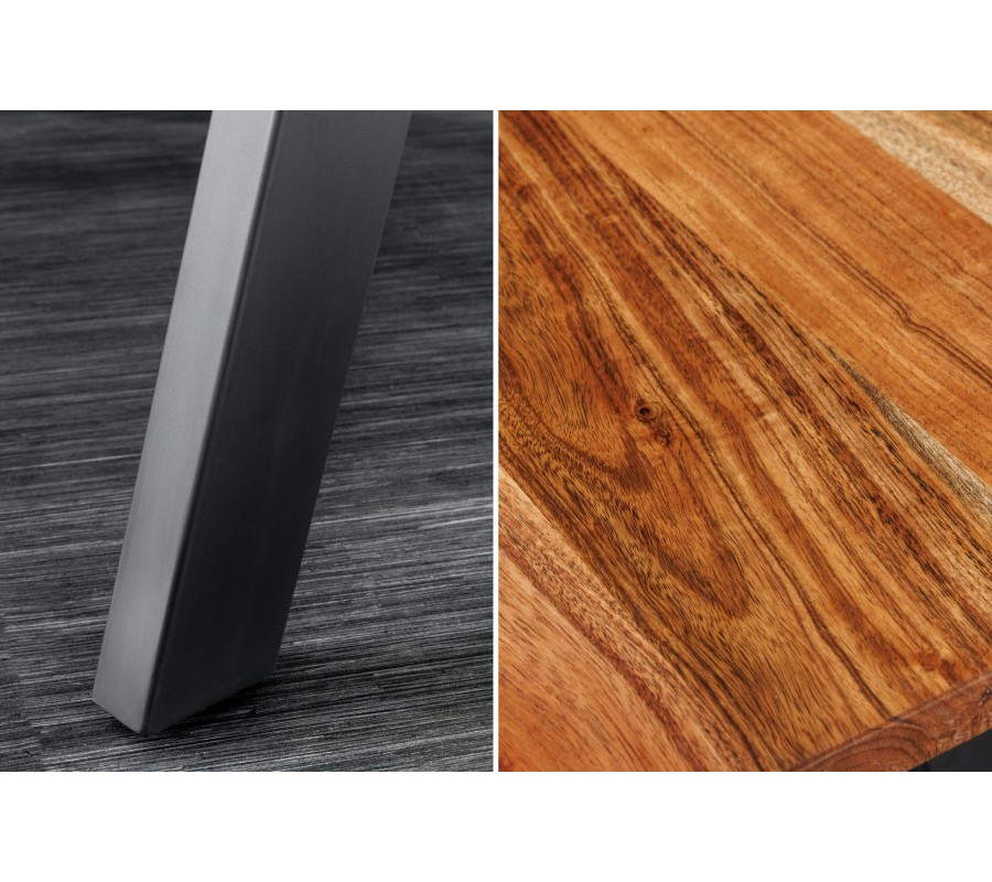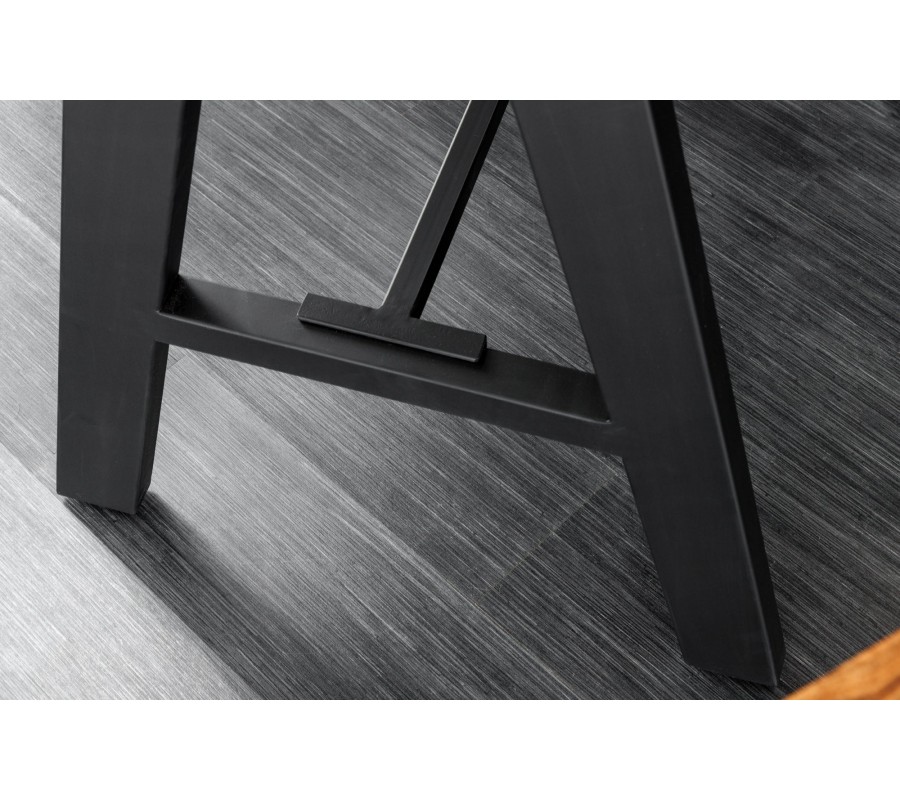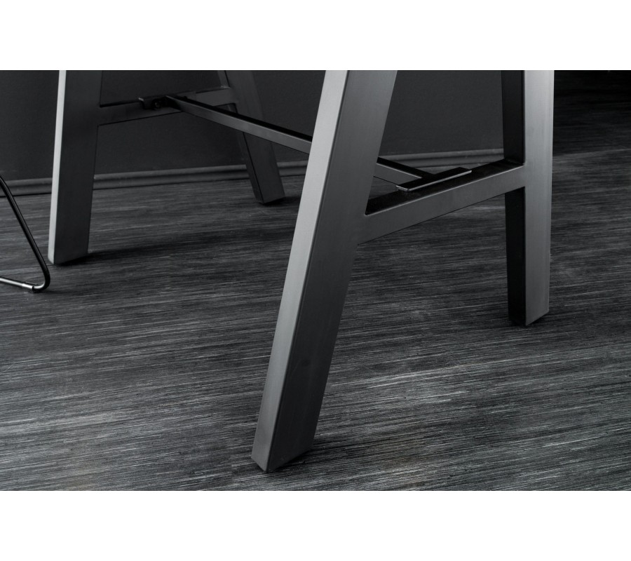 Nožičky z kovu s čiernym práškovým nástrekom dopĺňajú drevenú dosku a spolu tak vytvárajú pevný a stabilný základ. Táto kombinácia materiálov zabezpečuje dlhú životnosť stola, a taktiež podčiarkuje jeho industriálny dizajn a dodáva mu moderný nádych.