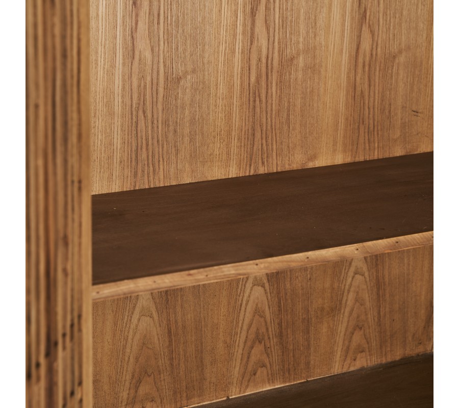 Úložný priestor je predelený dvomi policami, čím vzniká dostatok miesta na riad, poháre, fľaše, či ďalšie barové náradie. Skrinka je vyrobená z brestového dreva, ktoré je veľmi odolné a kompaktné, čo zabezpečuje dlhodobú trvácnosť nábytku. Jeho svetlá hnedá farba pôsobí teplým dojmom a výrazná kresba letokruhov zdôrazňuje prírodný charakter nábytku.