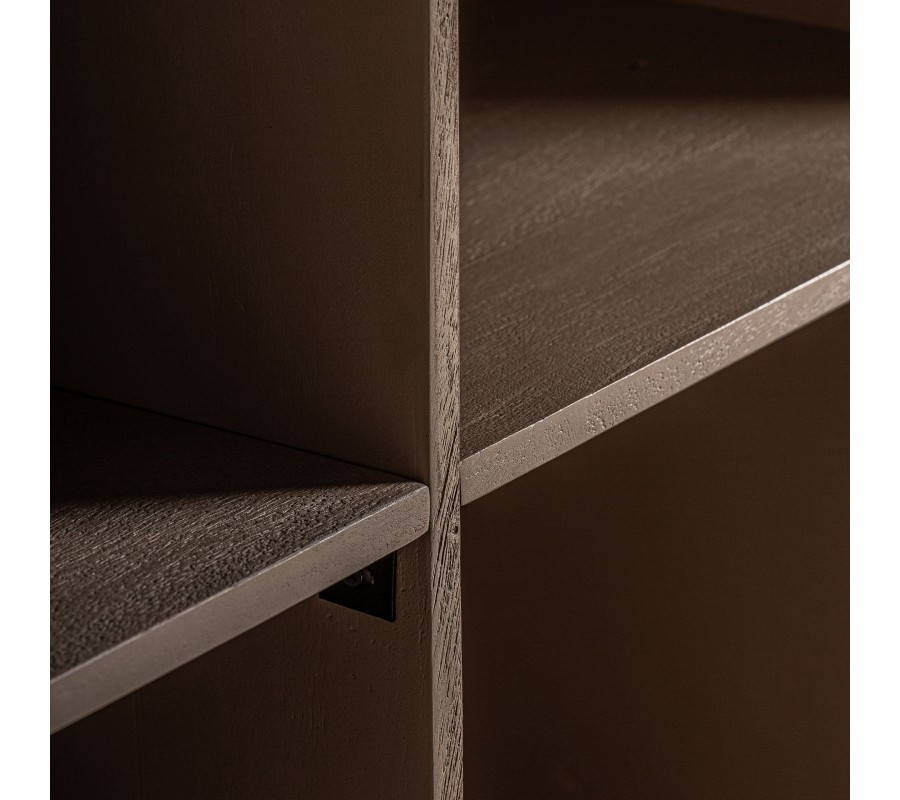 Zadná strana pultu je prakticky členená na deväť otvorených úložných poličiek rôznych veľkostí. Na ľavej aj pravej strane sa nachádzajú väčšie priehradky, ideálne na fľaše alebo vyššie predmety. V strede v dolnej časti sú tri menšie poličky, vhodné na menšie poháre alebo barmanské príslušenstvo. Celková šírka 243 cm umožňuje, aby sa k barovému pultu pohodlne postavilo 5–6 ľudí.