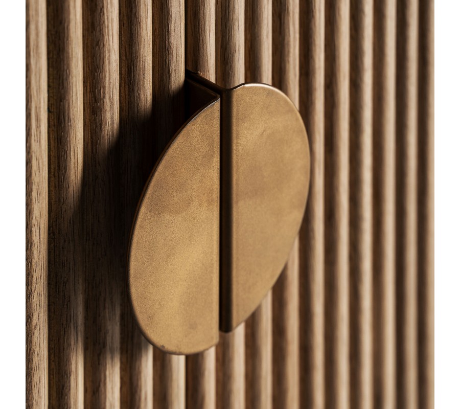 Táto skrinka sa perfektne hodí do luxusne zariadených interiérov, najmä do obývačky, jedálne alebo štýlového salónika. Výborne ju doplnia zamatové kreslá, mramorové stolíky a svietidlá so zlatými prvkami. Skombinovaním s ďalšími drevenými kúskami v teplých tónoch alebo s modernými kovovými detailmi docielite harmonický a elegantný priestor s nadčasovým šarmom.