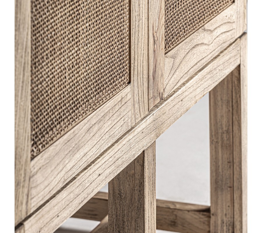 Luxusná koloniálna masívna svetlo hnedá obdĺžniková dvojdverová barová skrinka Ruka s výpletom a dvomi poličkami 171 cm
