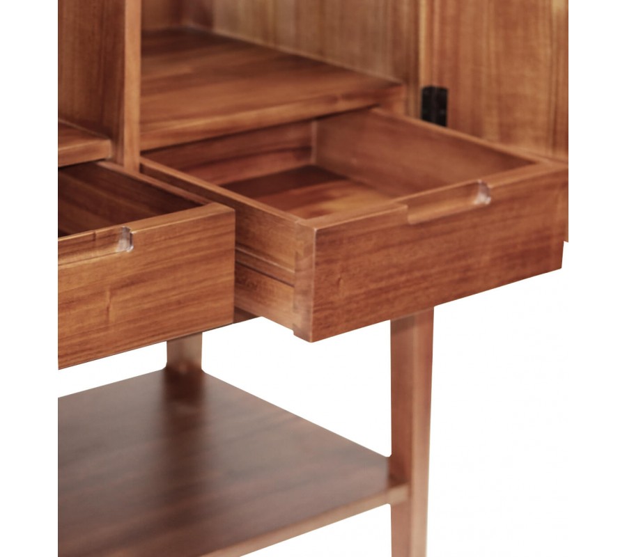 Barová skrinka Liberia prinesie do vašej obývačky či jedálne nádych luxusného koloniálneho štýlu. Z vonkajšej strany oceníte krásu a bohatú farbu mahagónového dreva, zatiaľ čo interiér vás prekvapí funkčným a praktickým úložným priestorom.