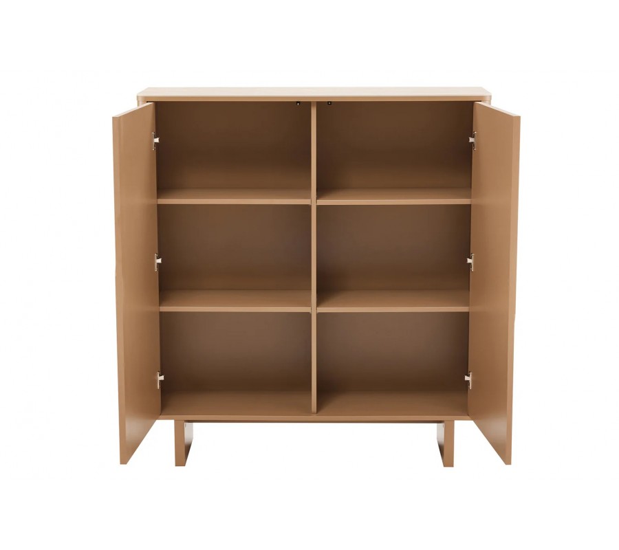 Dizajnová art deco barová skrinka Savonia s dvojitými dvierkami s geometrickým reliéfom vlny v hnedej farbe 131 cm