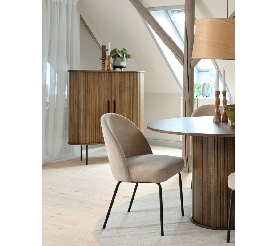 Barová skrinka Bornholm sa skvele uplatní v škandinávsky a seversky ladených jedálňach v kombinácii s prírodnými materiálmi, ako je drevo, kameň či koža. Vynikne aj v retro obývačke, napríklad pri farebnej zamatovej sedačke, a rovnako dobre sa hodí tiež do industriálneho interiéru, doplneného tmavými kovovými prvkami. Priestor môžete štýlovo doladiť ďalšími kúskami z rovnakej kolekcie Bornholm.
