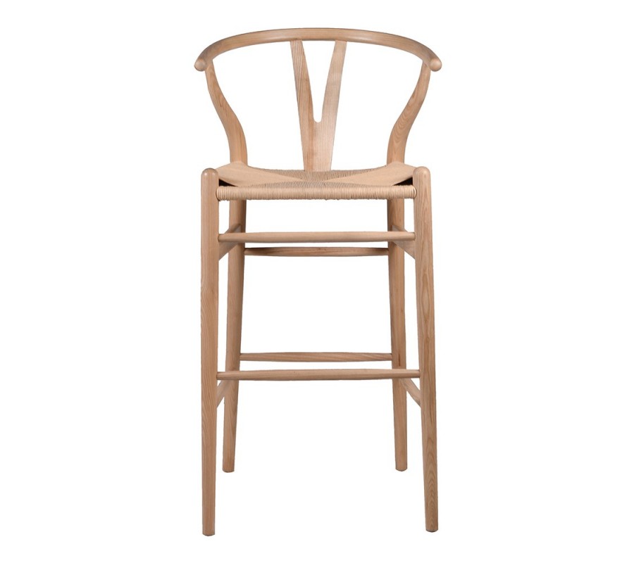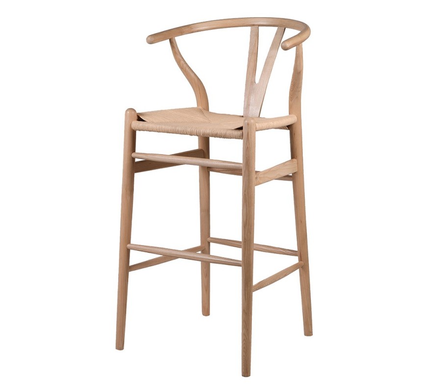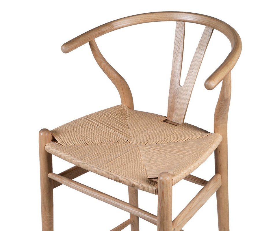 Barová stolička Gaffelboen je výnimočným kúskom v škandinávskom štýle, ktorý kombinuje jednoduchosť, funkčnosť a prirodzenú eleganciu. Vyrobená z masívneho brestu, má svetlý hnedý prírodný odtieň, ktorý zdôrazňuje krásu dreva. Nízke operadlo v zaoblenom tvare poskytuje pohodlnú oporu. Sedadlo je vyhotovené z vypletanégo ratanu, ktorý vytvára efektný geometrický vzor pripomínajúci hviezdu. Stolička je hladká s lesklým povrchom, ktorý má výraznú štruktúru letokruhov. Operadlo má ikonický wishbone dizajn, typický pre škandinávsky a severský štýl.