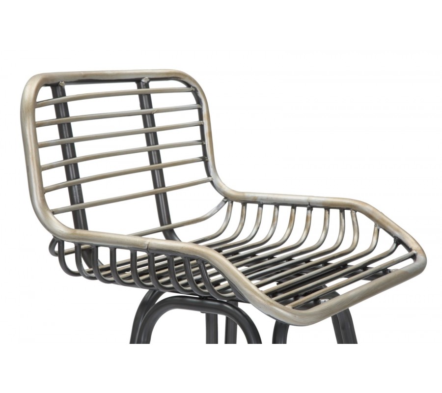 Dizajnová industriálna barová stolička Shawn z kovu v tmavej sivej farbe so svetlým patinovaným náterom sedadla 102 cm