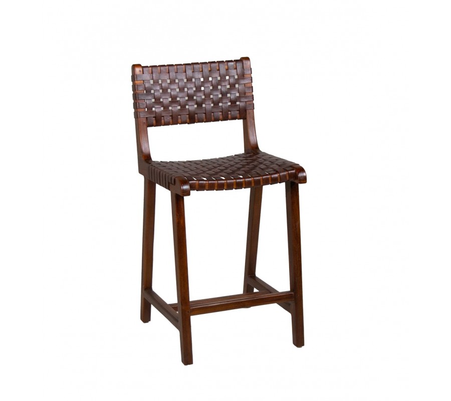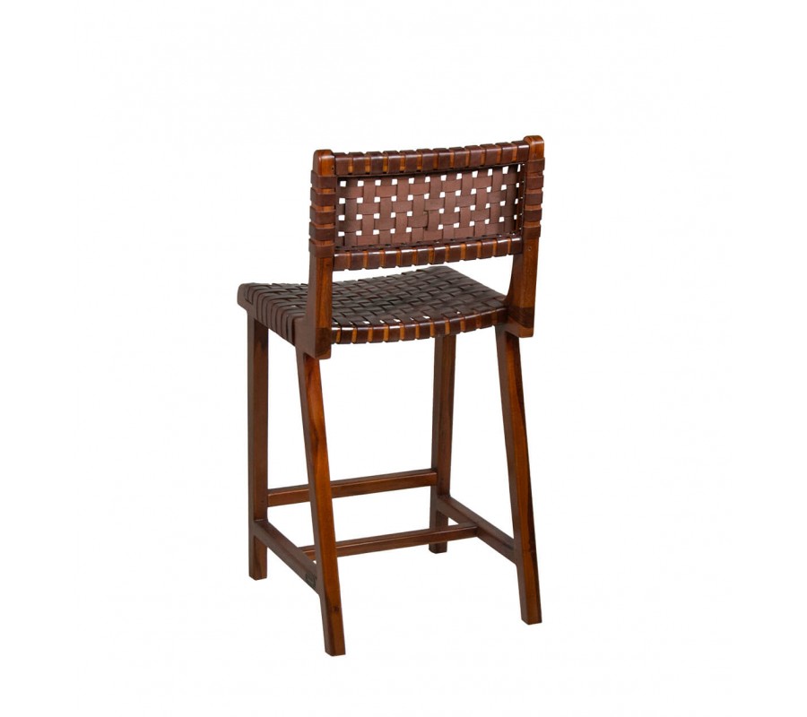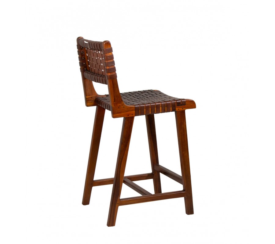 Koloniálna barová stolička Timal prináša do interiéru autentický šarm vďaka kombinácii prírodného masívneho dreva a remeselného výpletu z pravej kože. Konštrukcia z teakového dreva v tmavom hnedom odtieni pôsobí stabilne a elegantne, pričom hladký lakovaný povrch dodáva stoličke luxusný vzhľad.