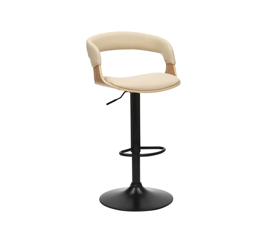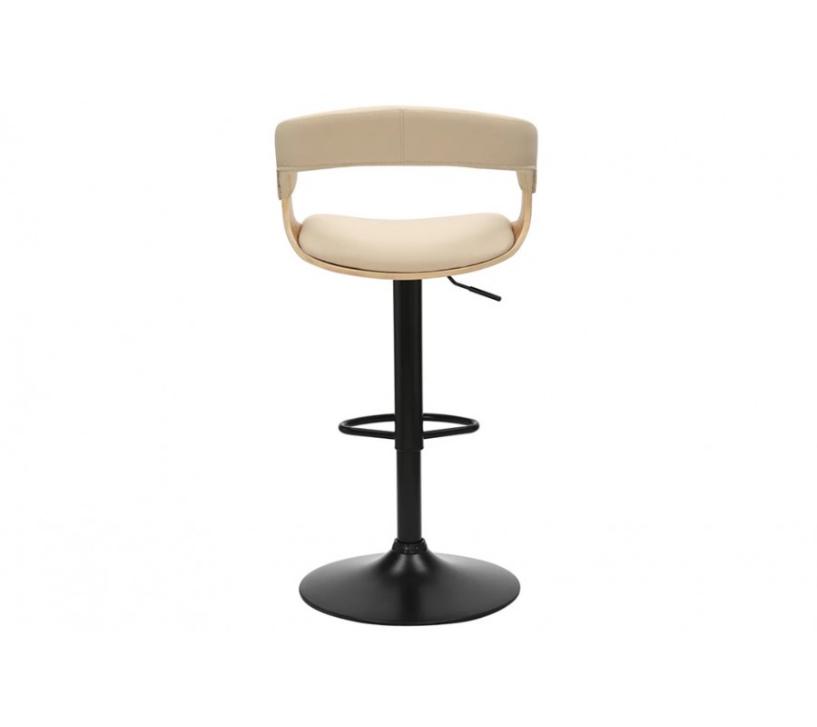Škandinávska otočná barová stolička Norwich s béžovým koženým poťahom a čiernou výškovo nastaviteľnou nohou 103 cm