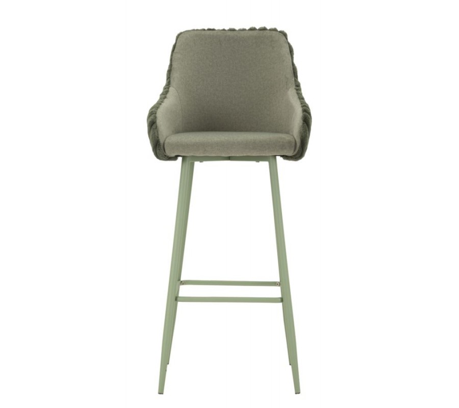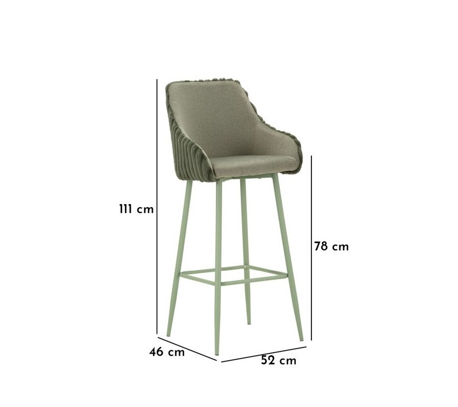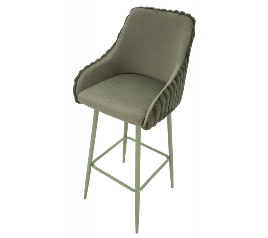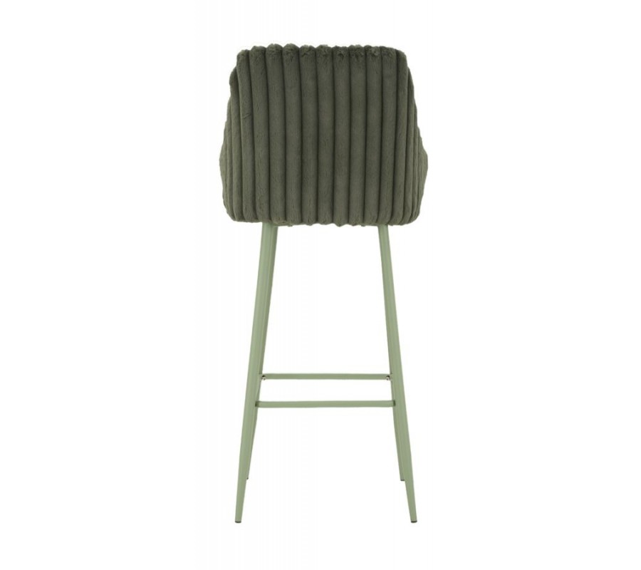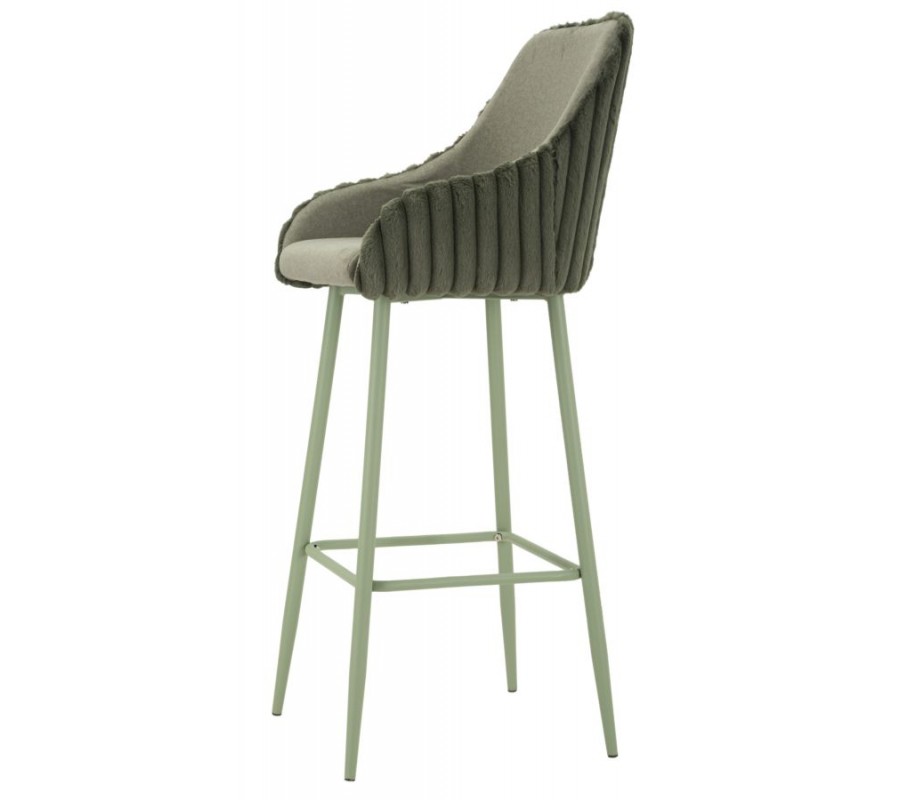 Moderná art deco barová stolička Denali s prešívaným plyšovým poťahom v šalviovej zelenej farbe s kovovými nohami 111 cm
